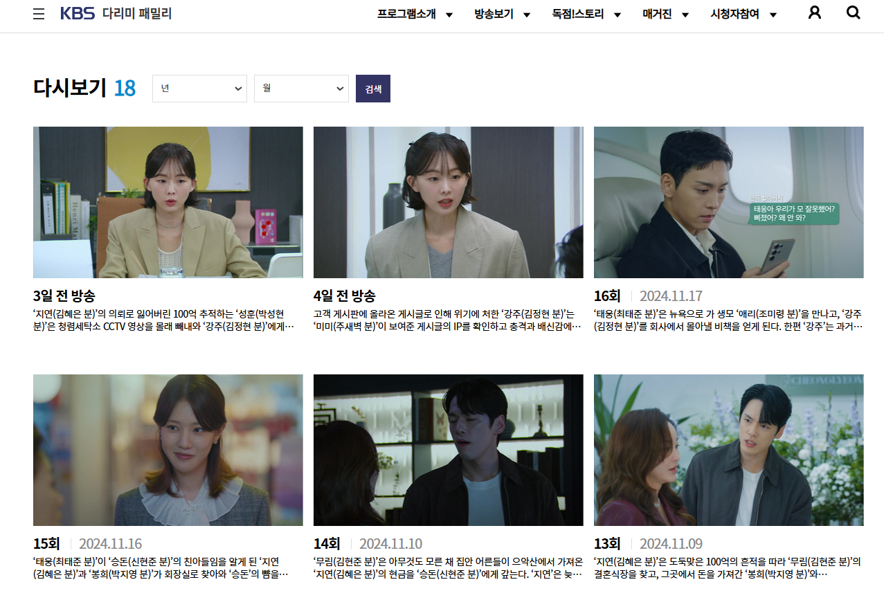 KBS 공식 홈페이지를 통한 다시보기